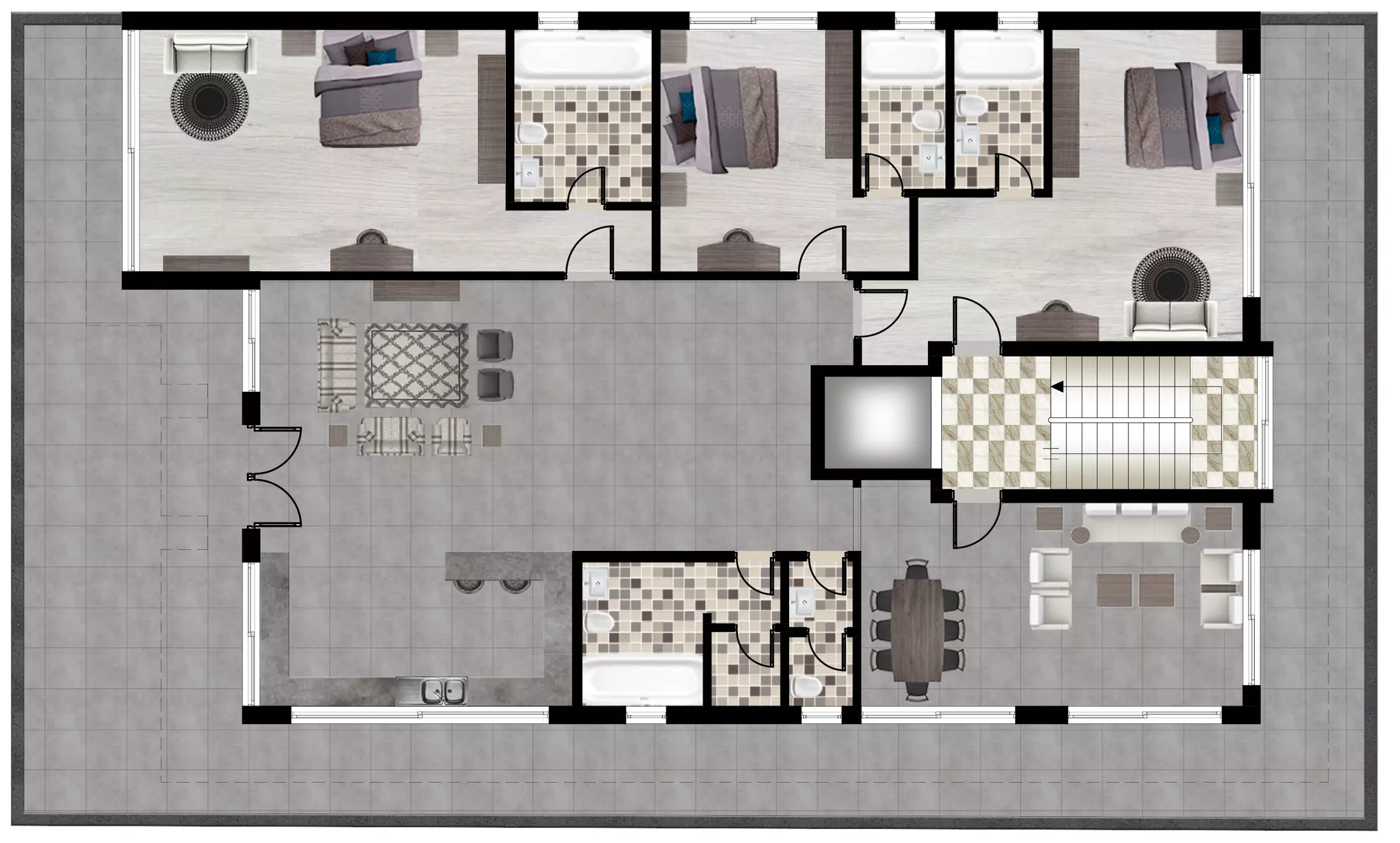 Discover luxury living in our exquisite penthouse. Located 10km from the 7th Circle area in prestigious Marj Al Hamam, The View Residence offers premium apartments on Prince Mohammad Residence Street. This extraordinary property, spanning 300 sqm with an additional 100 sqm terrace, offers breathtaking views of the western mountains and, on clear days, the mesmerizing Dead Sea. Secure this penthouse and live in a sanctuary of tranquility and beauty in one of Amman's most coveted locations.